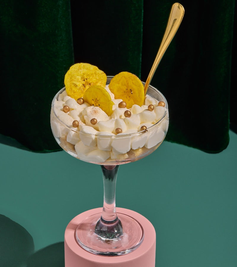 Chai dulce de leche, banana chunks, vanilla mascarpone & savoiardi biscuits.